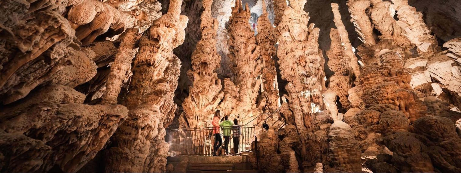 Aven d’Orgnac is a cave classified as a Grand Site de France. You have to climb down 700 steps to reach gigantic chambers 120 m underground, adorned with stalagmites and stalactites, each more magnificent than the last… Everywhere, the imperturbable drip sculpts the underground landscape, causing the concretions to grow by just a millimetre a year. Magnified by a subtle play of light, the world of Aven d’Orgnac is magical… and has made the Ardèche cave a world benchmark for the underground environment.
